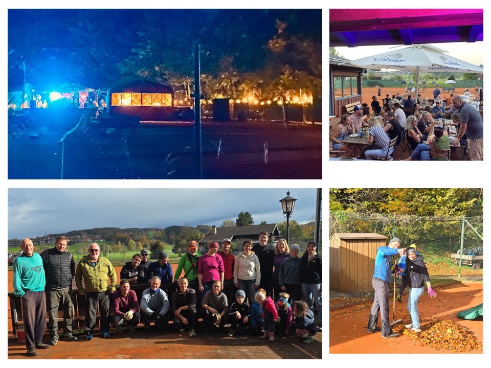 Gesellschaft und Gemeinschaft: Am Mountain-Beach Day (oben) brachte DJ Toni Hörterer nach dem geselligen Grillen das Tennisheim zum Leuchten und zum Einwintern der Plätze waren mehr als 25 Mitglieder anwesend – und Lea sagte Stefan Hamberger, was zu tun ist.