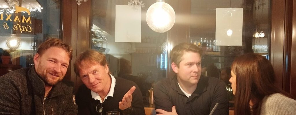 Abteilungsleiter Matthias “Jimmy” Lux (zweiter von links) mit Schatzmeister Florian Köninger, eingerahmt von beiden Vereinsmeistern Simon Hamberger und Lea Kloibhofer in reger Diskussion über die Vergangenheit und Zukunft des Bergener Tennis