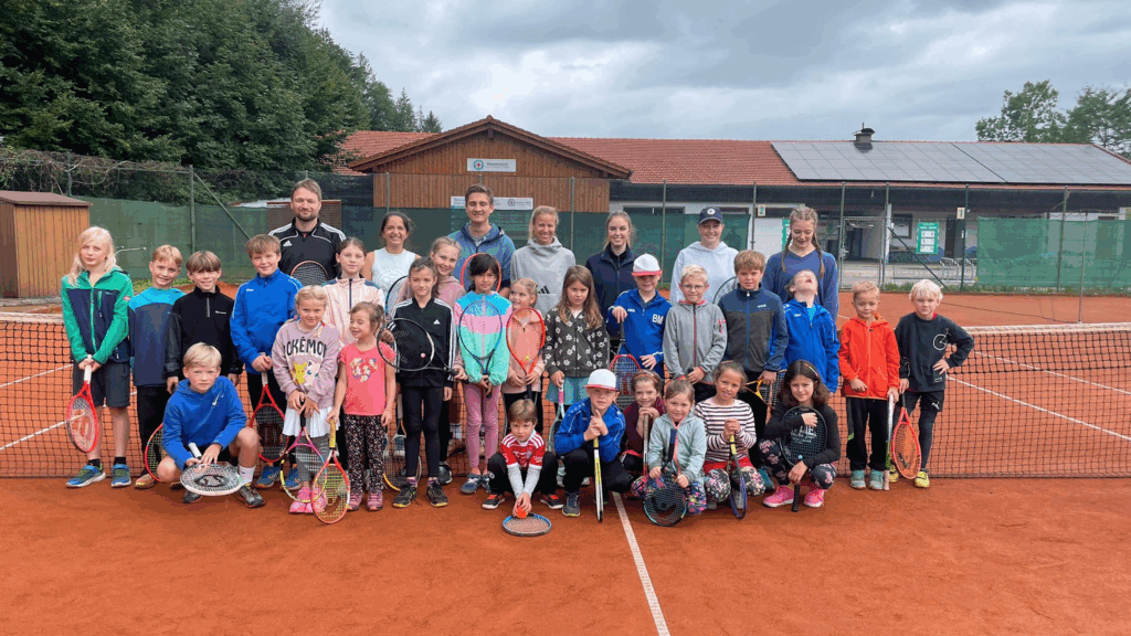 Sommercamp 2025: Unter der Anleitung von Lea Kloibhofer, Simon Hamberger und Steffi Gräser lernten 25 Jung-Stars die ersten Topspins, Slices und Stopps auf der Bergener Tennisanlage – die Zukunft ist gesichert.