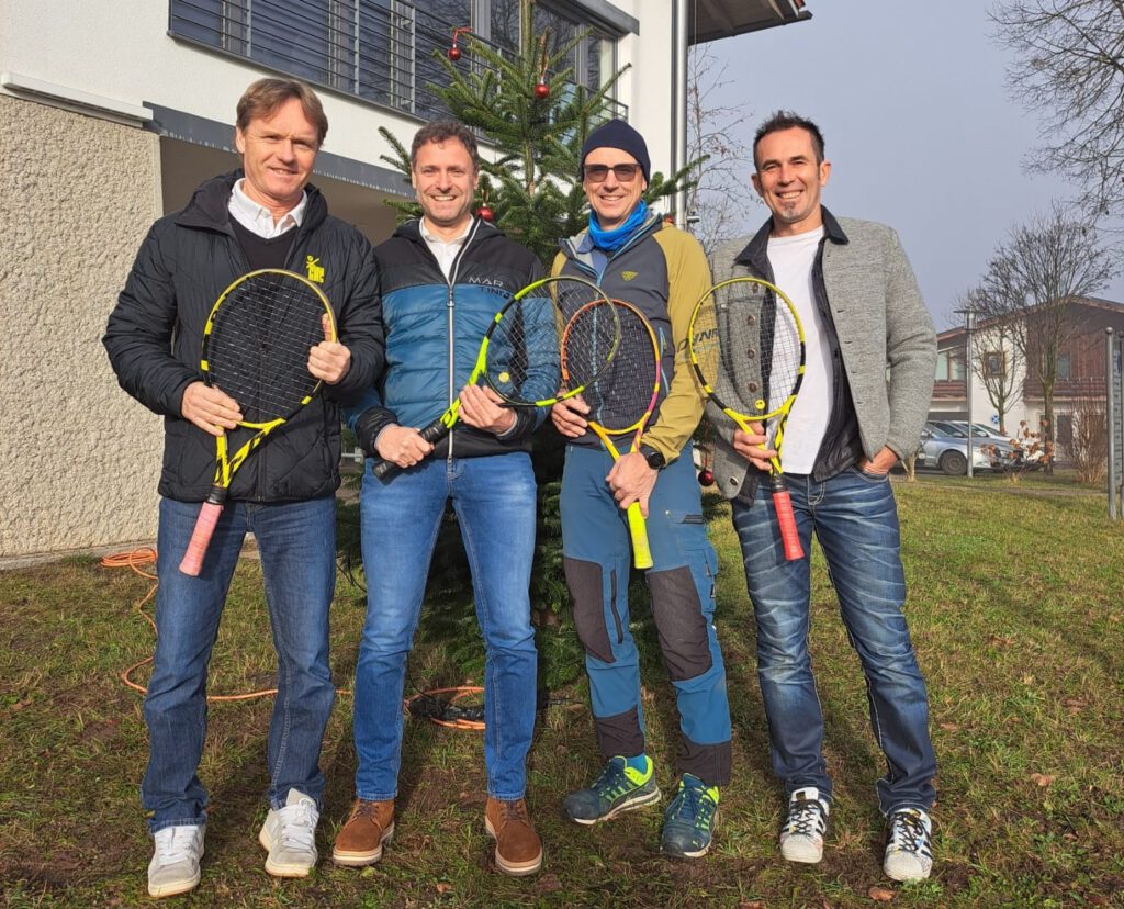 Schulterschluss zwischen Gemeinde, Hauptverein und der Tennisabteilung zum Wohle der Bergener Tenniszukunft: Abteilungsleiter Matthias Lux, Geschäftsführer der Gemeinde Bergen Andreas Schultes, TSV Vorstand Thomas Rodler und 2.Abteilungsleiter Thomas Stockhammer (von links nach rechts).