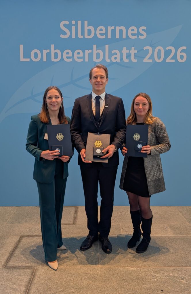 Silbernes Lorbeerblatt für Sophie Büscher, Julia Paszkiewicz und Lukas Bombik